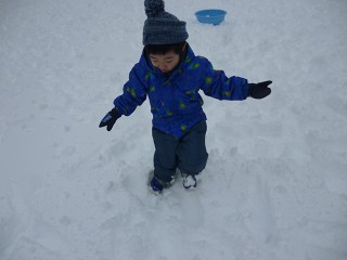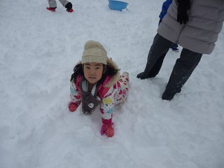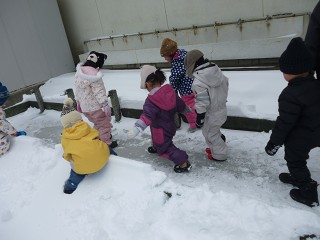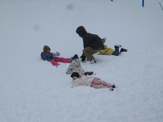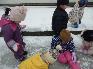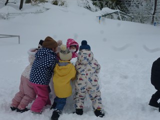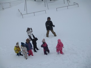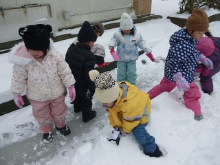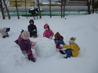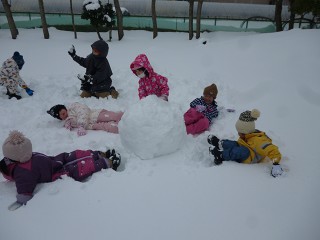 みんなは早速外へ…。大きな雪だるまを作りました。