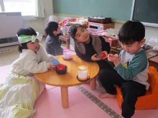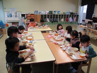 寒い日にあたたかい部屋でひんやりデザート!みんな、とってもおいしそうに食べていました。