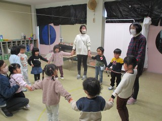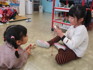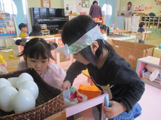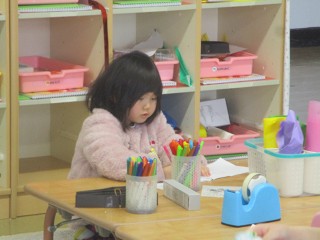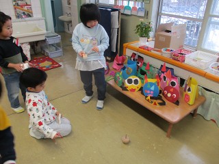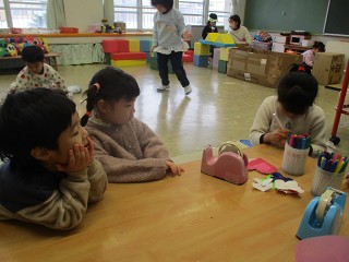 週末からの雪で、朝、西幼稚園も雪が増えていました。2月になりました。今日もみんなは、お友達と一緒に穏やかな時間の中で、じっくりと楽しんでいました。