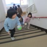 そして・・・いよいよ豆まき!福の神の教頭先生と園長先生が豆(おまじないをした新聞紙の豆)をまきました。みんなも一緒に拾ってはまいて拾ってはまいて。
