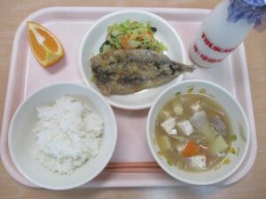 今日の給食は、ごはん、いわしのかばやき、とんじる、ひたし、いよかん、ぎゅうにゅうでした。鬼はいわしのにおいが苦手なんですって。そして、明日の立春に向けて…い 「いよかん」。