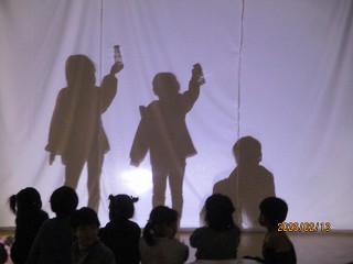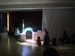 これまで、見たもの、聴いたこと、知ったことなどを言葉にして。年中さんと年長さんは南極のことをお話しました。そして、オーロラを再現。天井に映すオーロラがとても幻想的でした。