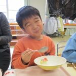今日の給食では、発表会の余韻を感じながら、みんなで楽しくいただきました。実は、今日、発表会の後、みんなでおいしいものを食べながらパーティーをしました。(この様子についてはまた後日お知らせします!)でも、給食もみんなが大好きなメニューで、たくさん食べていました。
