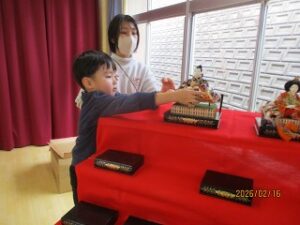 みんなでおひなさまを出しました。2月も半ば。もうひな祭りがすぐです。