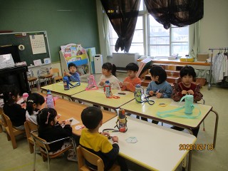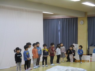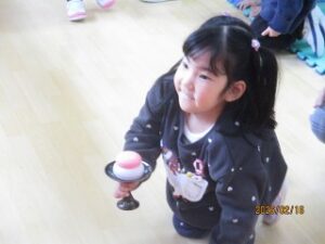 13日の生活発表会後の様子を先日お伝えできなかったので、お伝えします。見に来てくださったみなさんがお帰りになった後、みんなでおやつを食べながらパーティーをしました。