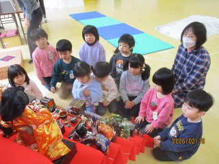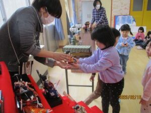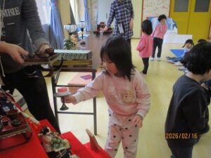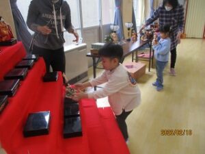 それまで、元気な声で遊んでいたみんなは、おひなさまを飾るときになると、静々と歩き、とても大切におひなさまや道具を運んでいました。