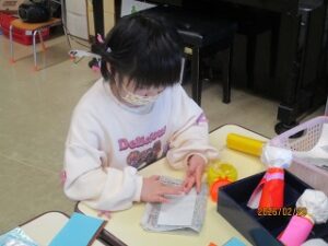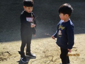 今日はとてもいいお天気でした。みんなは外へ…。ウキウキした気持ちでいろいろなものを見つけていました。そして「あれ?」と立ち止まる瞬間がたくさんありました。
