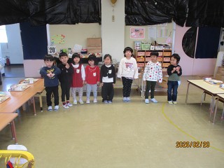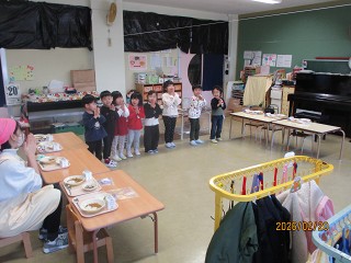 今日はお休みしたお友達がいたため、8人。給食のときには、「いただきます」のごあいさつを8人みんなが前に出てしていました。