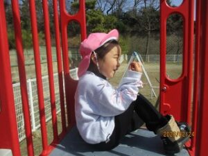 気温があがってきて、過ごしやすい季節になってきました。2月も最終週。春を園庭で見つけました。