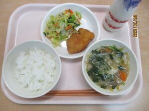 今日の給食は、みんなの大好きなチキンのたれカツ