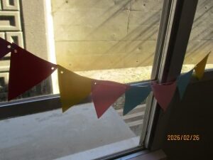できた!さて、どうやって飾る????ここでもみんなのアイディアが光りました。「上に飾ったらどう?」
