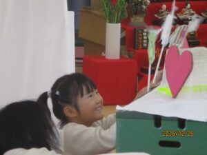 年中さんが中心になって、年長さんが喜ぶことを一生懸命考え、企画した会です。年中さんと年少さんはこの日まで、素敵な飾りを作ったり、準備をしたりしていました。
