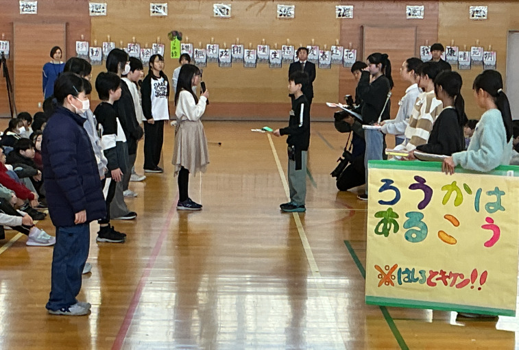 2年生がダンスを披露したり、縦割り班で、校長先生と筋肉ジャンケンしたり、