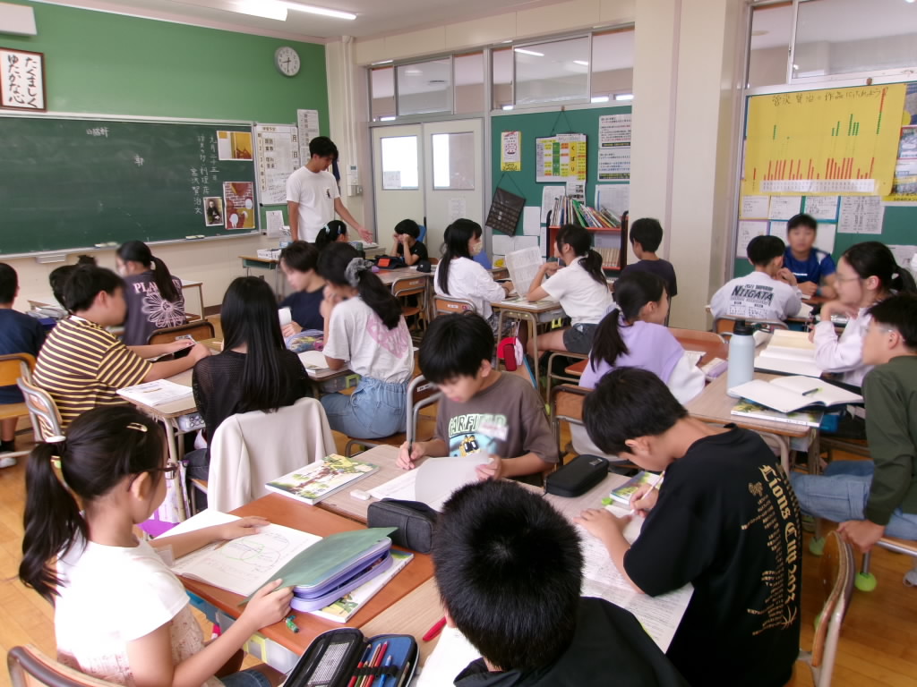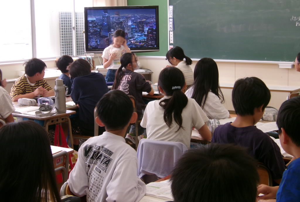 5年生のあるクラスの学習の様子です。グループでの教え合い、話し合い、相談ですね。