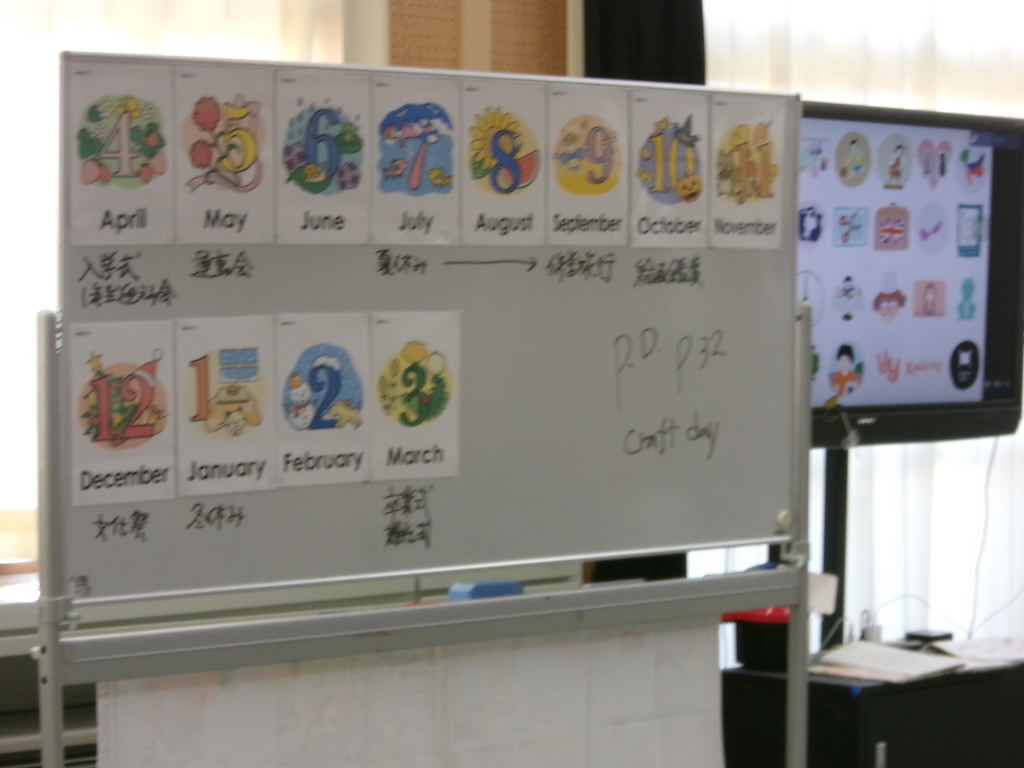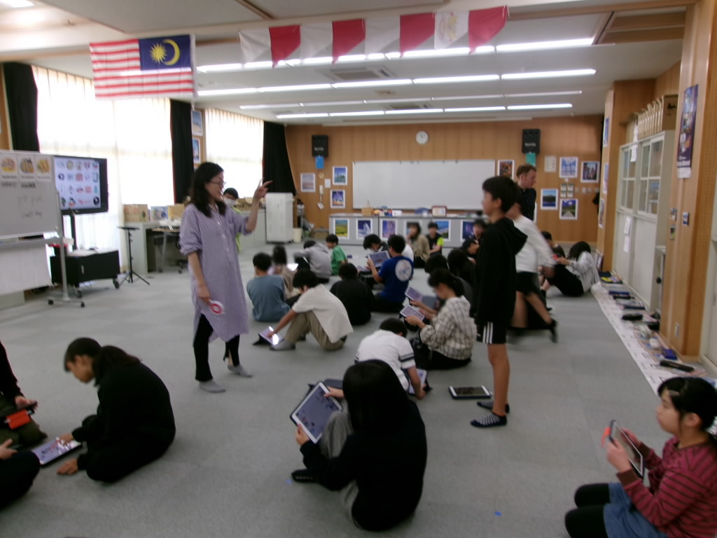 外国語の学習の一場面。Englishroomで6年生が「What's your best memory?」への自分の返答をどう言えばいいのか調べたり考えたりして、先生の質問に答えていました。