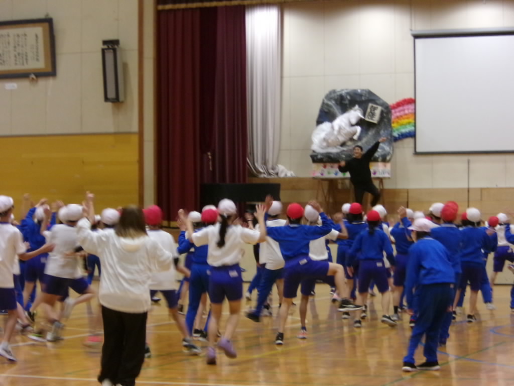 6年生が新潟総おどり代表の岩上寛さんから「まほろば」という祭りの踊りを教えていただきました。