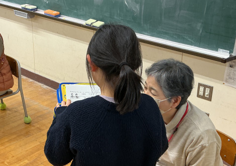 2年生が九九を覚えているかをチェックする「九九ボランティア」に地域の皆様から協力していただいています。2年生は九九をがんばって覚えそれぞれのペースでチェックをしてもらっています。