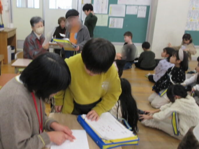 今日で3回目になりますが、かけ算九九ボランティアの皆さんから2年生の九九検定をしてもらいました。