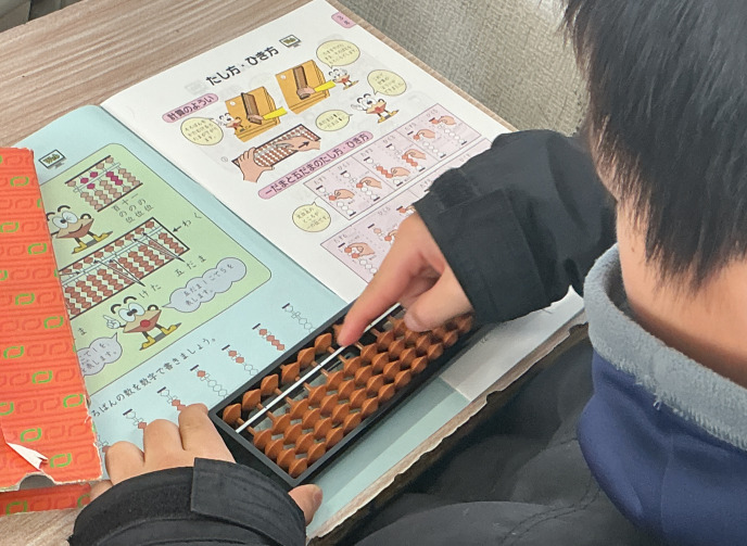 講師の先生をお招きして、3年生がそろばん教室を行いました。講師の先生からそろばんの歴史やいろいろな国のそろばんについて、玉を使った数の数え方などを教えていただきました。人差し指をつかってそろばんの玉をならす方法を教えていただき、「シャッ!」といい音を鳴らしていました。