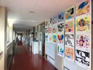 5月2日(木) 運営委員会の子どもたちが、朝、児童玄関で「おはようございます」とあいさつの輪を広げています。「お:大きな声で か:からだをおこして め:目を見て」にプラス「笑顔」。全校のリーダーとして率先して「おかめのあいさつ」をしています。