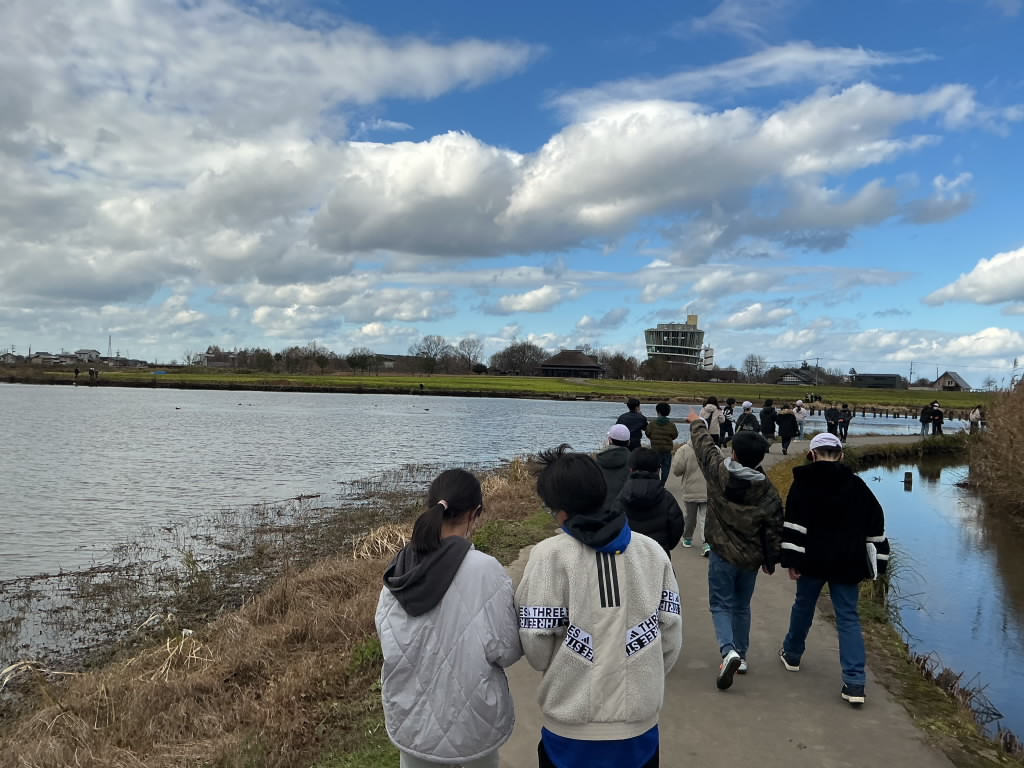 1年生の下校は、方面別のグループでみんな一緒に帰ります。
