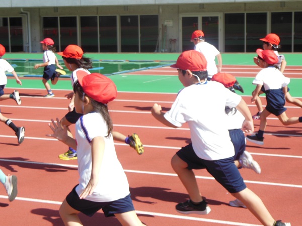 大勢の参観者に囲まれ、緊張ぎみの子供たち。