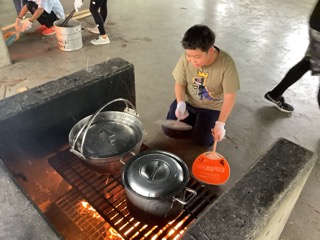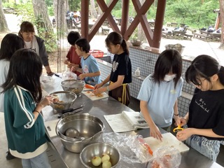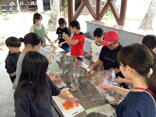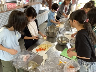 みんなで協力してカレーライスを作っています。
