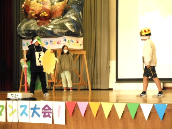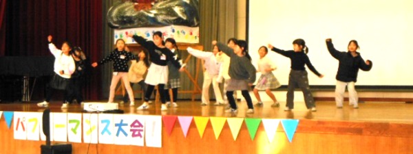 企画委員会主催の「パフォーマンス大会」を実施しました。これは個人でも、グループでも、学級でも自由に参加できます。自分の得意なことや興味のあることを表現し、全校の前での発表に挑戦する場です。まさに、教育ビジョンの「挑む亀」と「伝える亀」をゲットすることができる最高の舞台です。1年生から6年生までの8組が、歌やダンス、アクロバット、演劇、おもしろ動画を披露しました。45分の授業は長く感じるのに、あっという間の60分でした。子どもたちの才能とポテンシャルの高さに圧倒されました。ブラボー!!