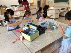 ランドセルもきれいに並べて活動します。楽しい遊びがたくさんあって夢中になって遊びました。今度の開催日からは、他学年のお友達とも一緒に活動できるのが楽しみです。