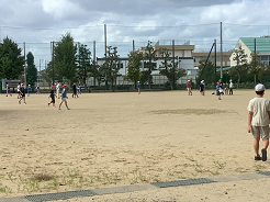 上山小学校の広いグラウンドでは、サッカーやドッジボール・鉄棒で遊んでいる児童が多いです。