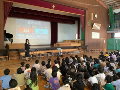 今日で前期が終わりました。校長先生からは、通知表でうまくいったこと、いかなかったことをふり返り、がんばってきたことを自信に繋げてほしい。やさしさは人の心を動かすという考え方を「北風と太陽」のお話に例えて話をすると、子どもたちは真剣に聞いていました。後期からもよろしくお願いいたします。