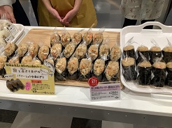 5年生は、7月にパンとおむすびを考案して、11月にパンとおむすびを発売しました。パンはブーランジェリーリリッカさんで、おむすびは新潟駅にあるえんむすさんで販売させていただきました。