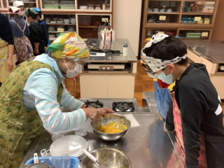 3、4年生がお世話になった方々をお招きしてかぼちゃパーティーを開きました。ペースト状のカボチャをホットケーキミックスと混ぜて「蒸しパン」をつくり、とってもおいしい時間を過ごしました。地域の皆様ご協 …