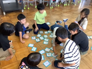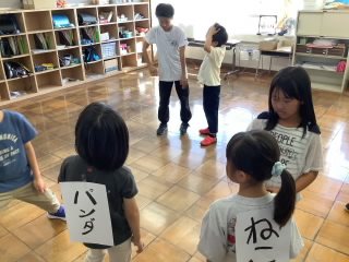 今日は中学年が、みんなで楽しめる遊びを企画しました。風船バレーや自作かるた、私は誰でしょうゲームなど、楽しい時間を過ごしました。