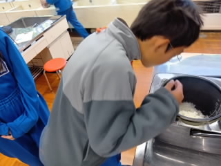 総合学習の「広めよう!自慢の笠木米」の学習で、「笠木米」のよさを知るために、2種類のご飯を炊いて食べ比べました。香は?味は?色は?