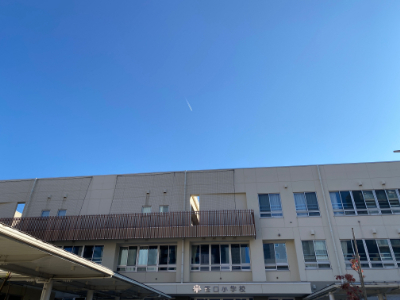 雲一つない青空とひこうき雲。今朝はきもちのよい朝でした。子どもたちの表情も明るく見えます。 休み時間になると、職員室と校長室の前を通って、子どもたちが向かうのは「ほっとハウス」です。今日は晴れ …