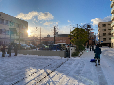 今日は、昨日よりは積雪量が多かったですが、さほどの量ではなく胸をなでおろしました。そして子どもたちの登校時間帯は太陽が出ていましたが、氷点下の寒い朝でした。校門や玄関付近を今日も用務員さんが除雪をし …