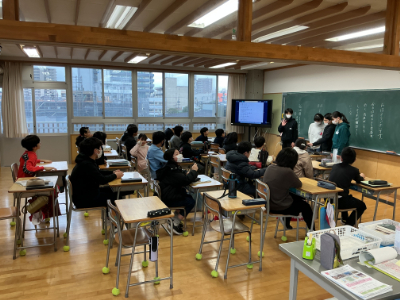 あたたかくなってきたかなぁと思っていましたが、太陽が出ていないとまだ少し肌寒く感じますね。 今日は、1時間目の各学級の様子をお伝えします。 6年2組は、学級でお楽しみ会の相談をしていました。鬼ご …