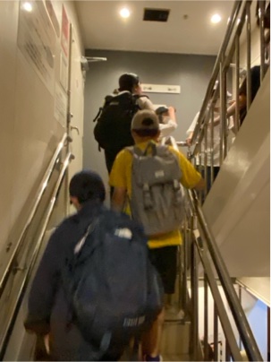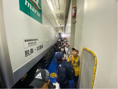 バスに乗ったままカーフェリーに乗り込みます。貴重な体験です。