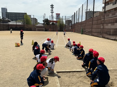 2年生は1・2組の合同体育です。体育館でいろいろな運動に親しんでいます。
