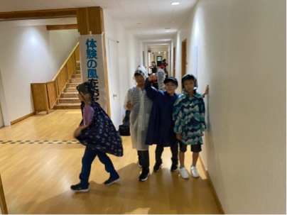 点検を待つ間、雨ガッパを着て次のカレーづくりに備えます。