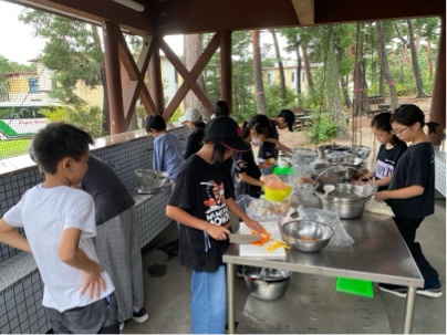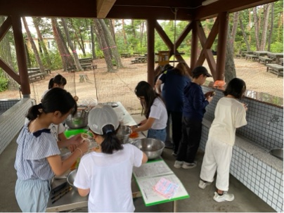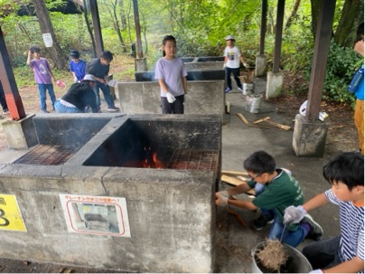 カレーづくりが始まりました。ちょうど雨もやみラッキーです。