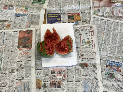 何と見事1人目で命中!スイカは仲良く切り分けてお家に持ち帰ることになりました。