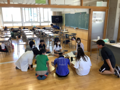 チャレンジ学級が収穫したスイカでスイカ割りをするということで、わざわざ5年生がお誘いに来てくれました。