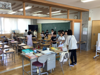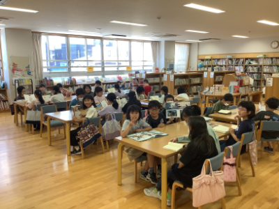 4年生は、図書の時間でした。みんな「し~ん」と集中して読書にふけっています。邪魔をしないように「そーっと」ドアを開けて撮影しようとしたのですが気付かれてしまい、カメラ目線にさせてしまいました。お邪魔をしてすいませんでした。