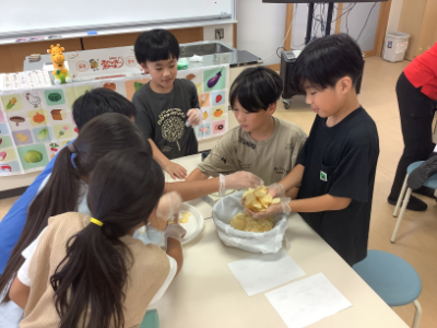 まだ家庭科では学習していないのに、子どもたちから五大栄養素が全て出てきたりして、「5年生の皆さん、すごいですね。」とほめていただきました。また、講師の方も、みんなが積極的に挙手をしたり意見を言ったりして活動に参加してくれたのでとても楽しかったと言ってくださいました。