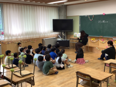 今日は水曜日。下学年は読み聞かせから1日のスタートです。今日もたくさんのボランティアの方が来てくださいました。