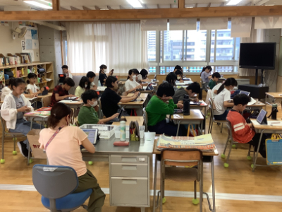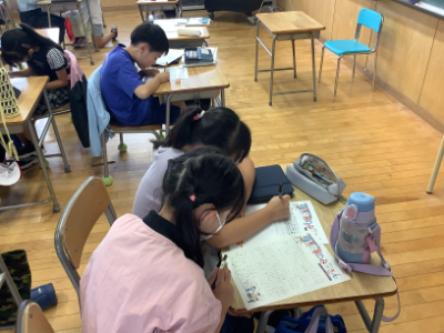 5年1組は、自然教室でお世話になった少年自然の家の方やゲストティーチャーの方にお礼状を書いていました。