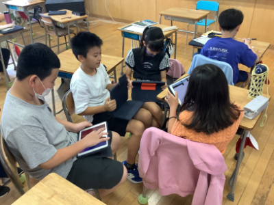 グループで考える時は、タブレットも活用しています。