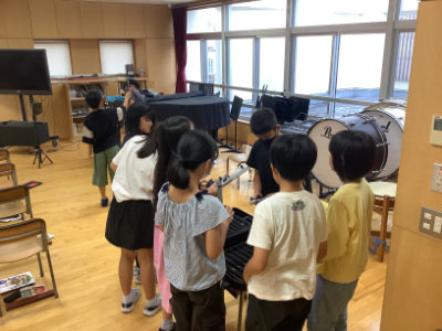 その後、3人ずつで同時に音を出し、その音色がどんな風に聴こえたのか、直観でタイトルをつけて楽しんでいました。
